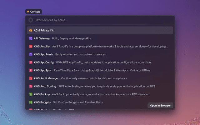 This extension uses your ~/.aws/credentials file to get your access key id and secret.
