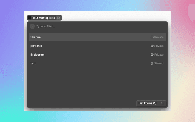 Explore your workspaces, list your form and get and overview of forms stats.
